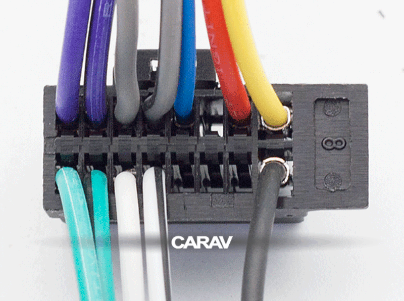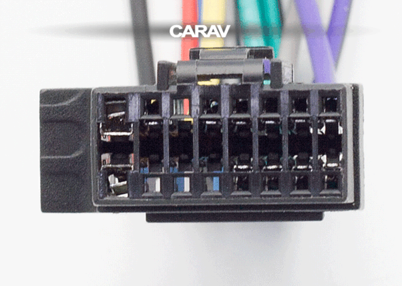 16-pin connector (female) <---> CARAV <---> ISO (male) Power & Speakers