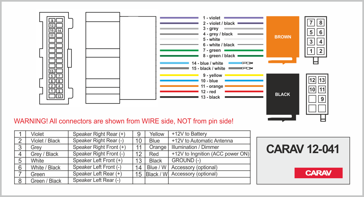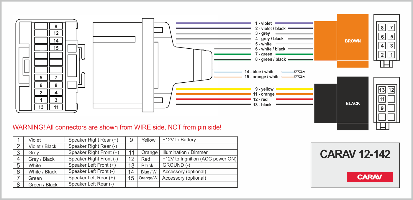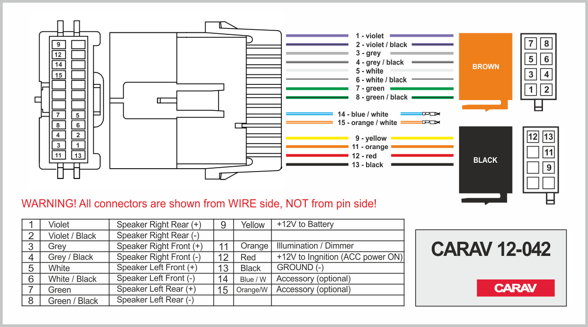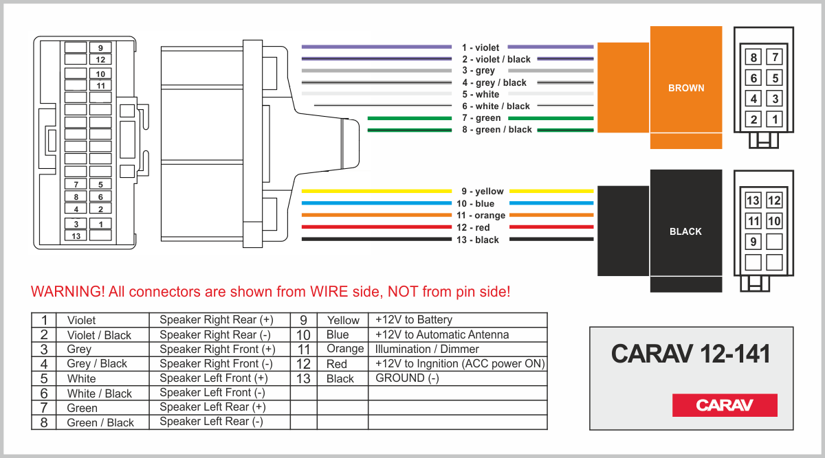 Connector OEM (female) <---> CARAV <---> ISO (male)