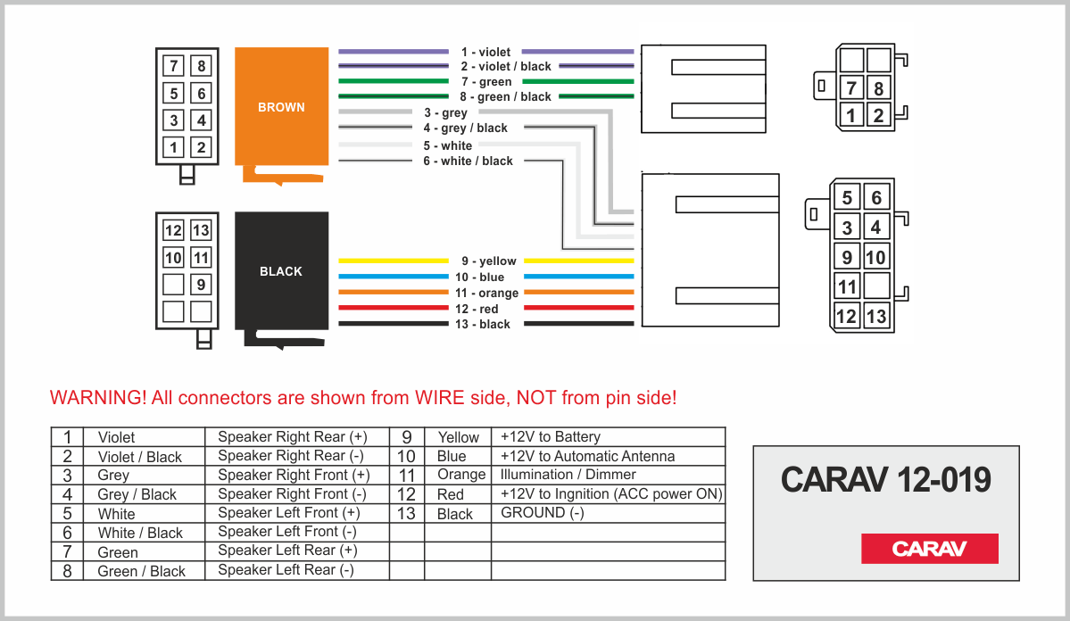 CARAV 12-012: HONDA 1999+ (select models) / ACURA 1999+ (select models) / SUZUKI 2001+ (select models) / FIAT Sedici 2006+ / NISSAN Pixo 2009+ / OPEL Agila B 2008+