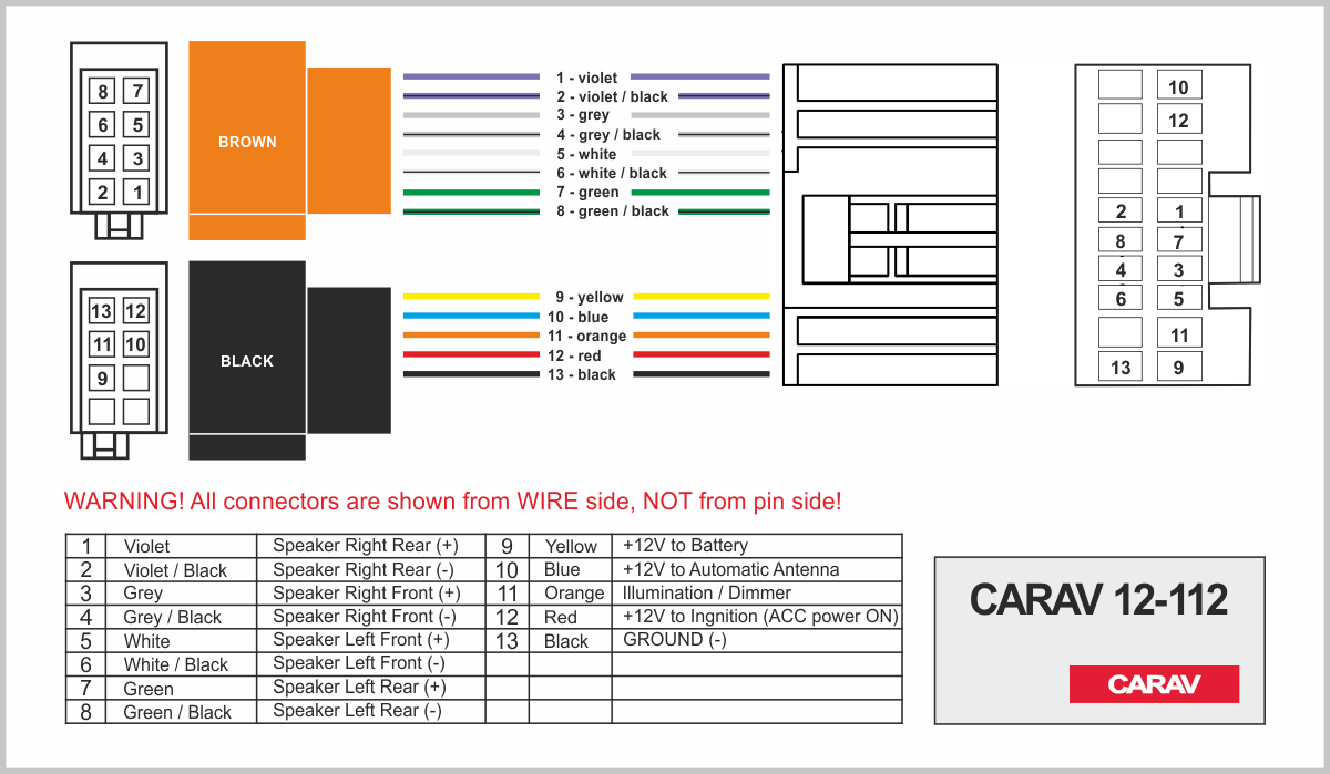 Connector OEM (female) <---> CARAV <---> ISO (male)